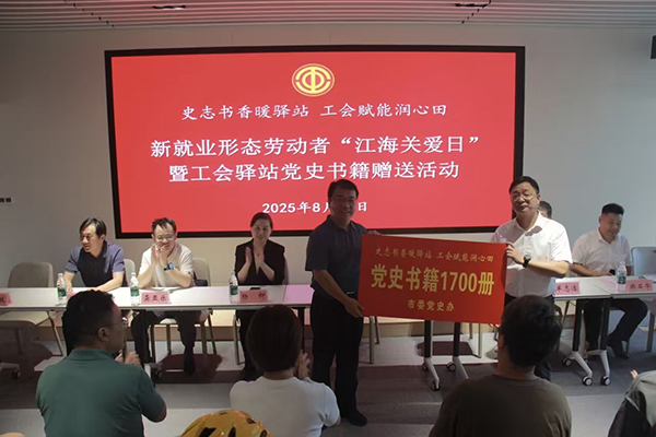 8月21日,南通市委党史办向南通市区100家工会驿站赠送1700册党史书籍