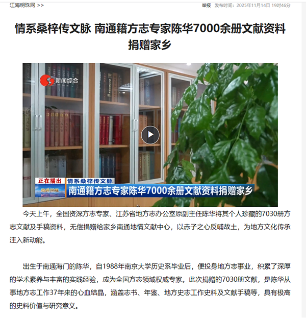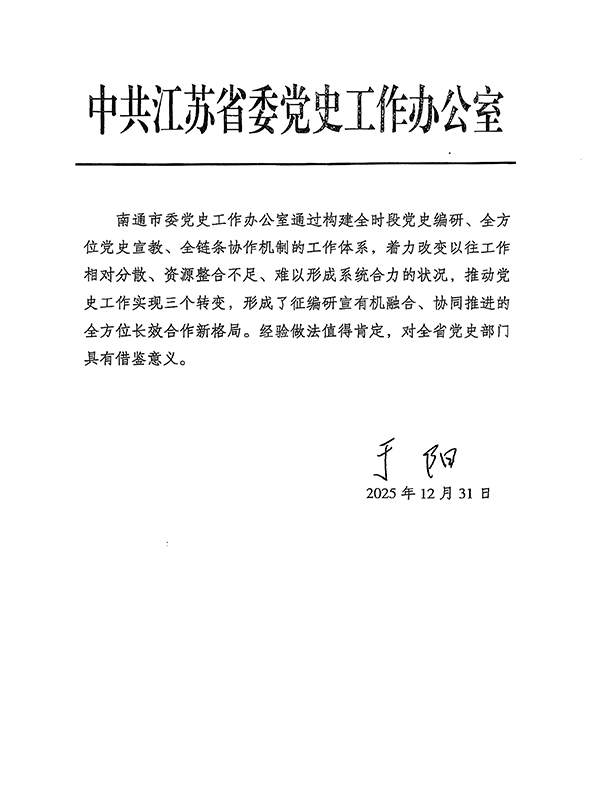 2025年,南通史志系统在市委市政府坚强领导下,在上级主管部门关心指导下,脚踏实地,锐意进取,高站位服务中心大局,大情怀做好主责主业,实举措传播江海文化,严作风加强队伍建设,全市史志事业高质量发展、交出精彩答卷。