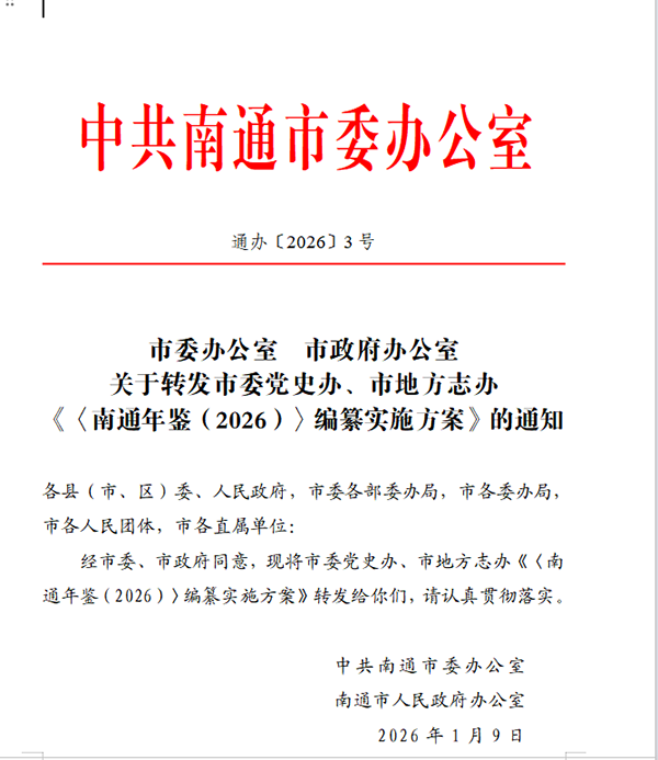 《〈南通年鉴(2026)〉编纂实施方案》出台