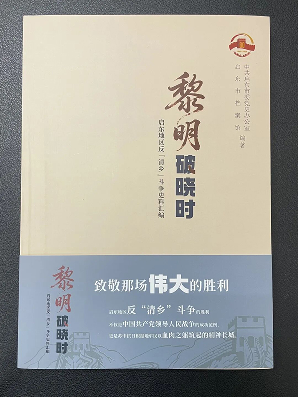 近日,启东市委党史办公室联合启东市档案馆,共同编著的《黎明破晓时——启东地区反“清乡”斗争史料汇编》一书公开出版。